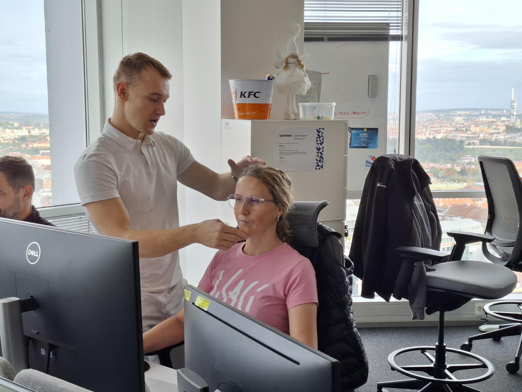 Praktická ukázka přímo na pracovišti měla velký úspěch – většina z nás si odnesla hned několik tipů, jak si drobnými úpravami zlepšit komfort při práci. Ergometrie nám připomněla, že zdravé tělo a správné pracovní návyky jsou klíčem k tomu, abychom se v práci cítili dobře – každý den, nejen po víkendu.
