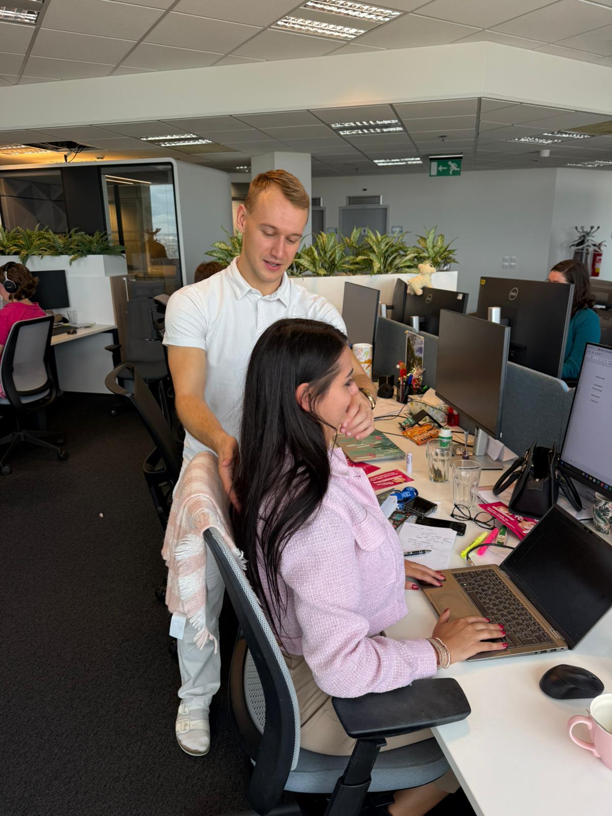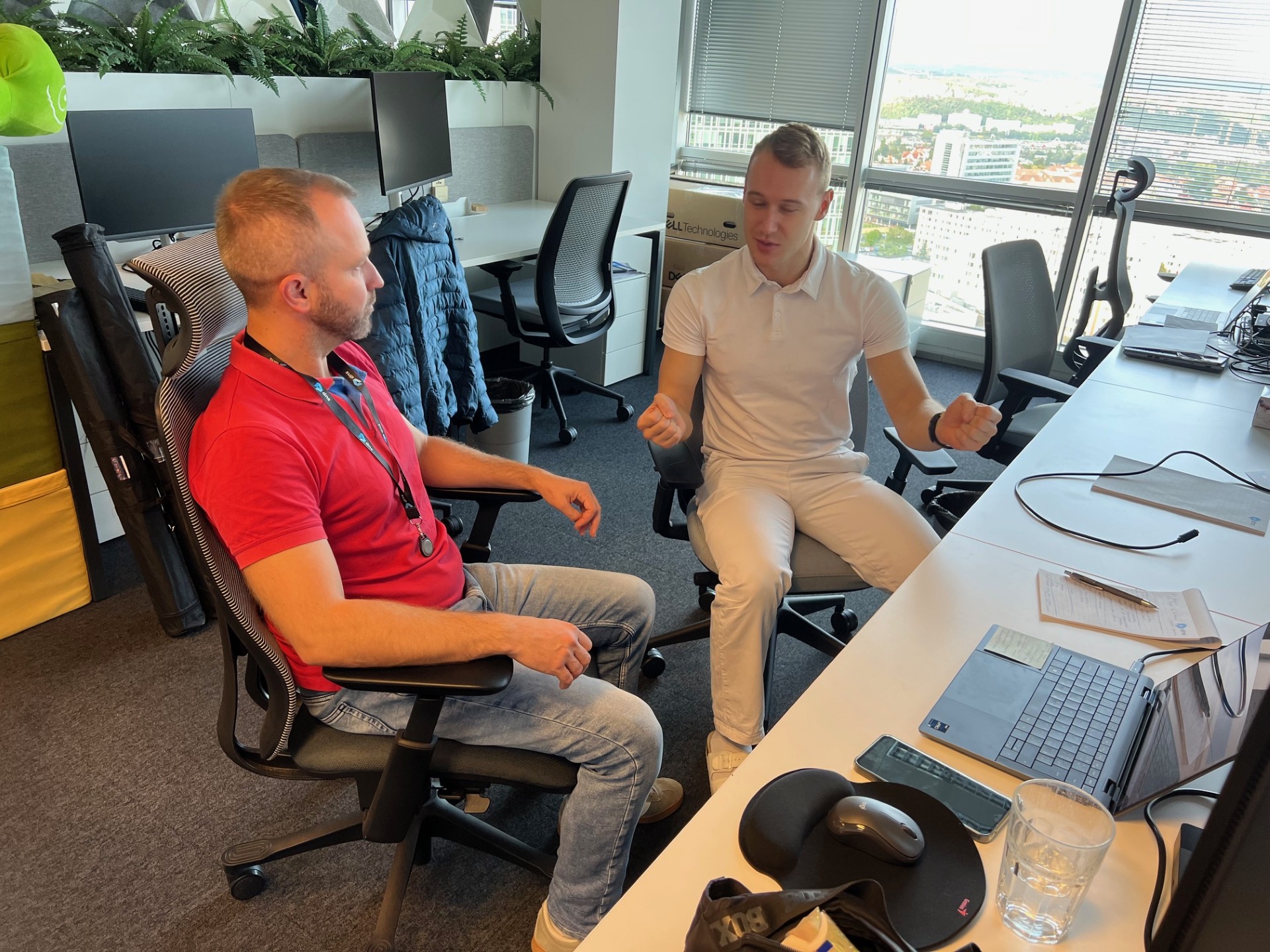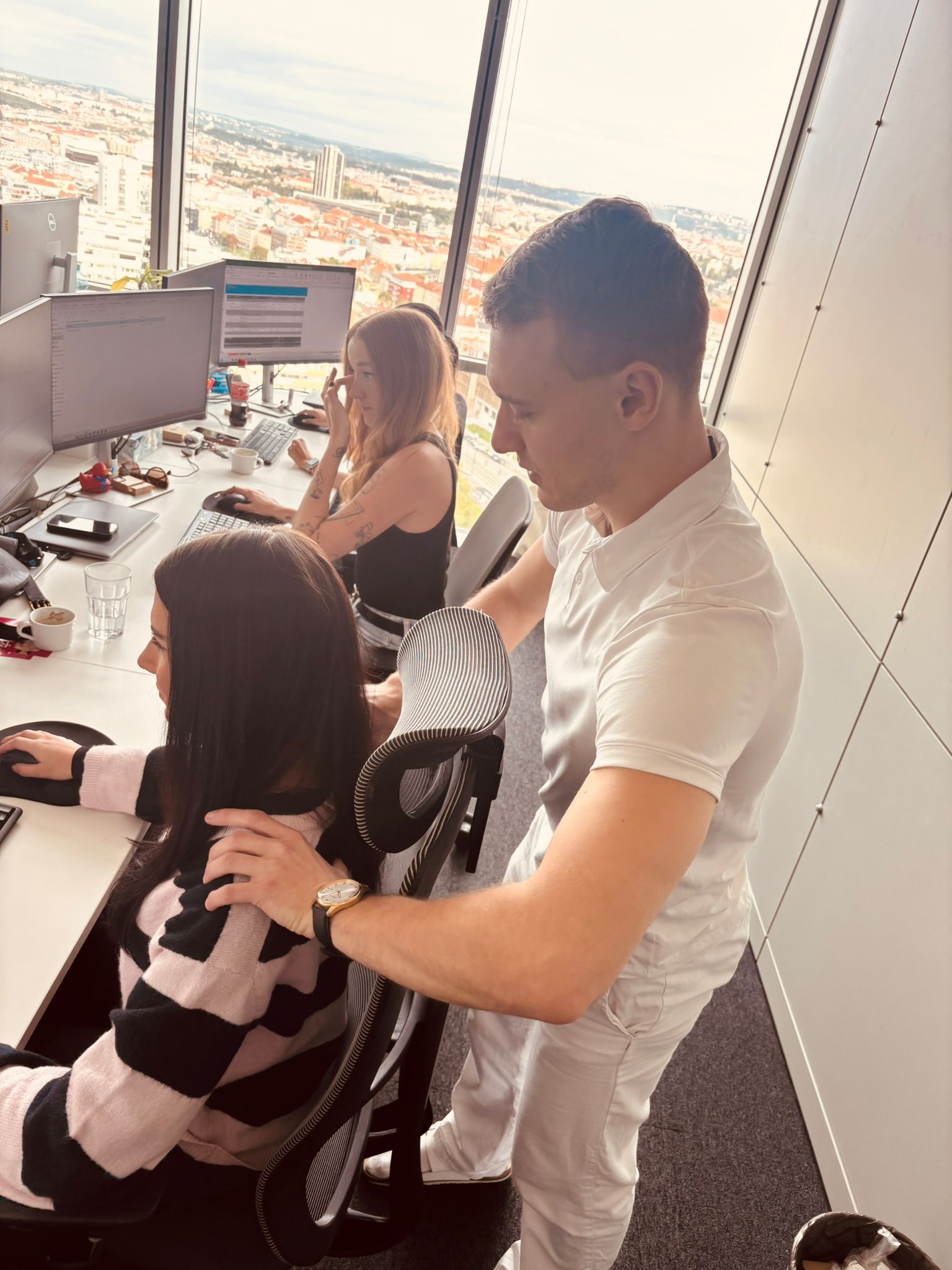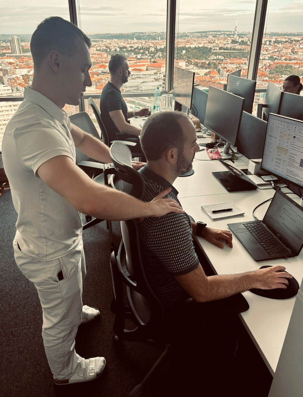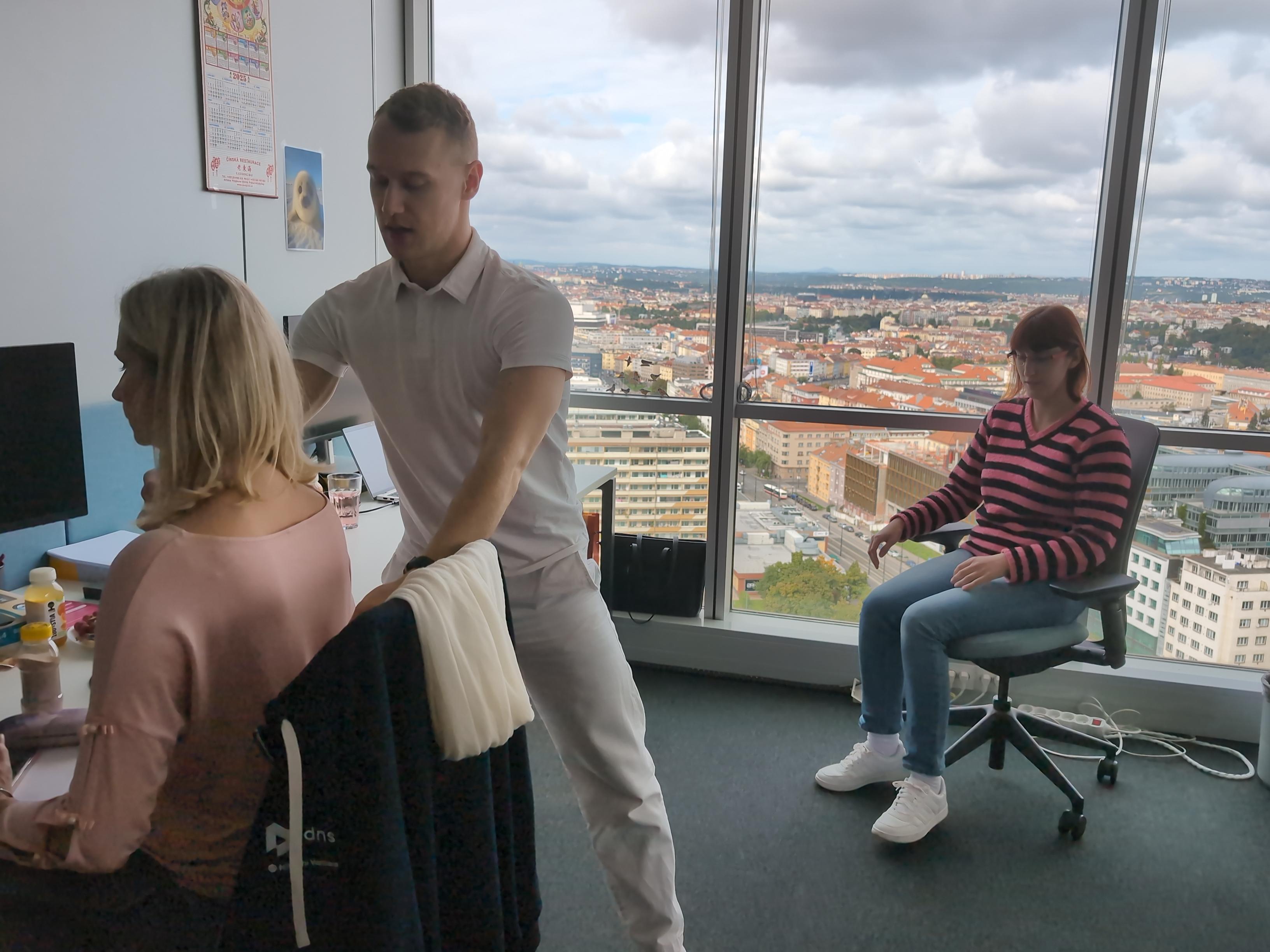 Odborníci na ergonomii s námi prošli, jak správně nastavit židli, monitor, klávesnici i výšku stolu, aby naše tělo při práci fungovalo co nejlépe. Součástí byla také teoretická část a otevřená diskuse, kde jsme se dozvěděli, proč je správné držení těla důležité i z pohledu dlouhodobé pohody a výkonnosti.
