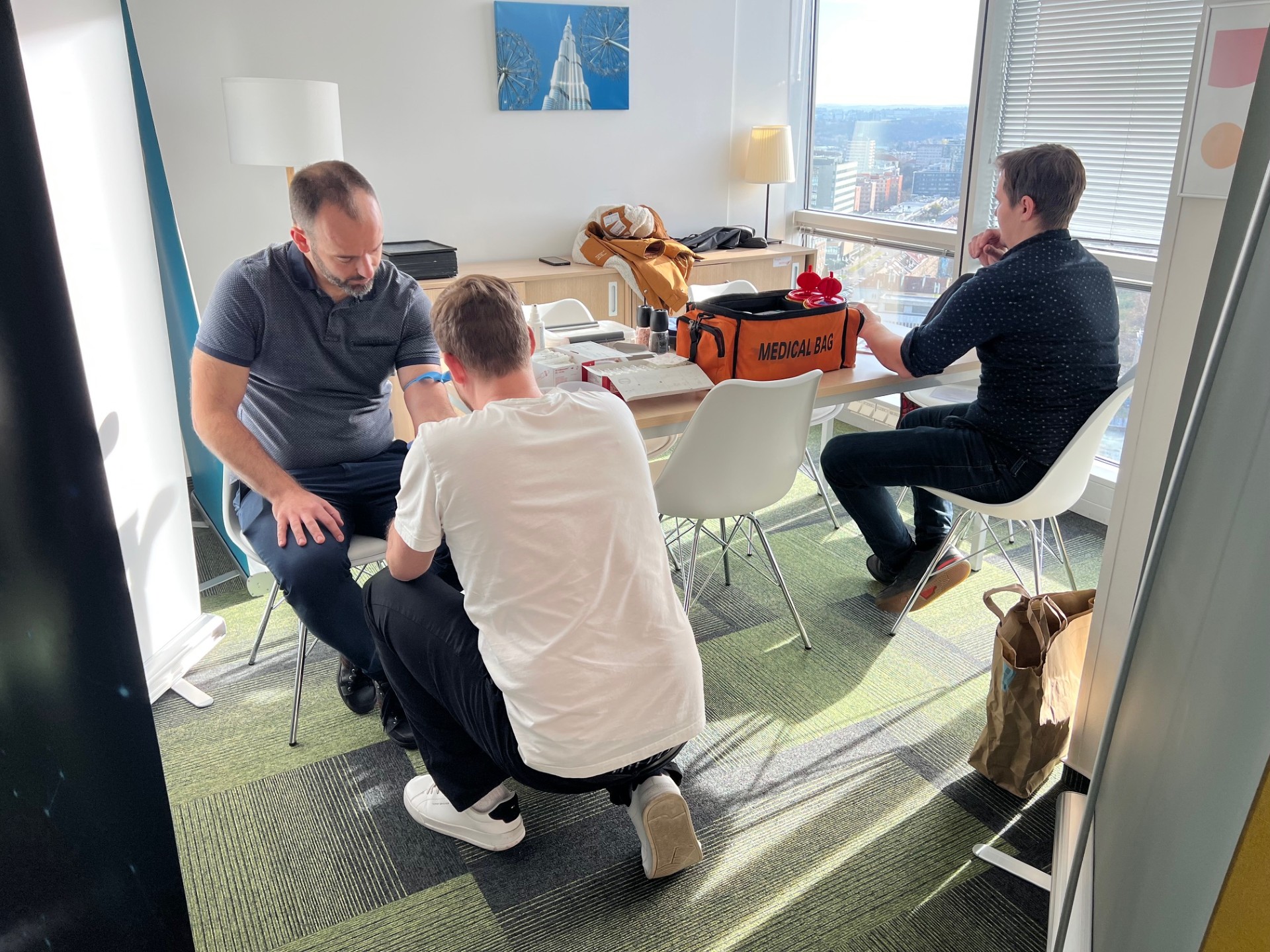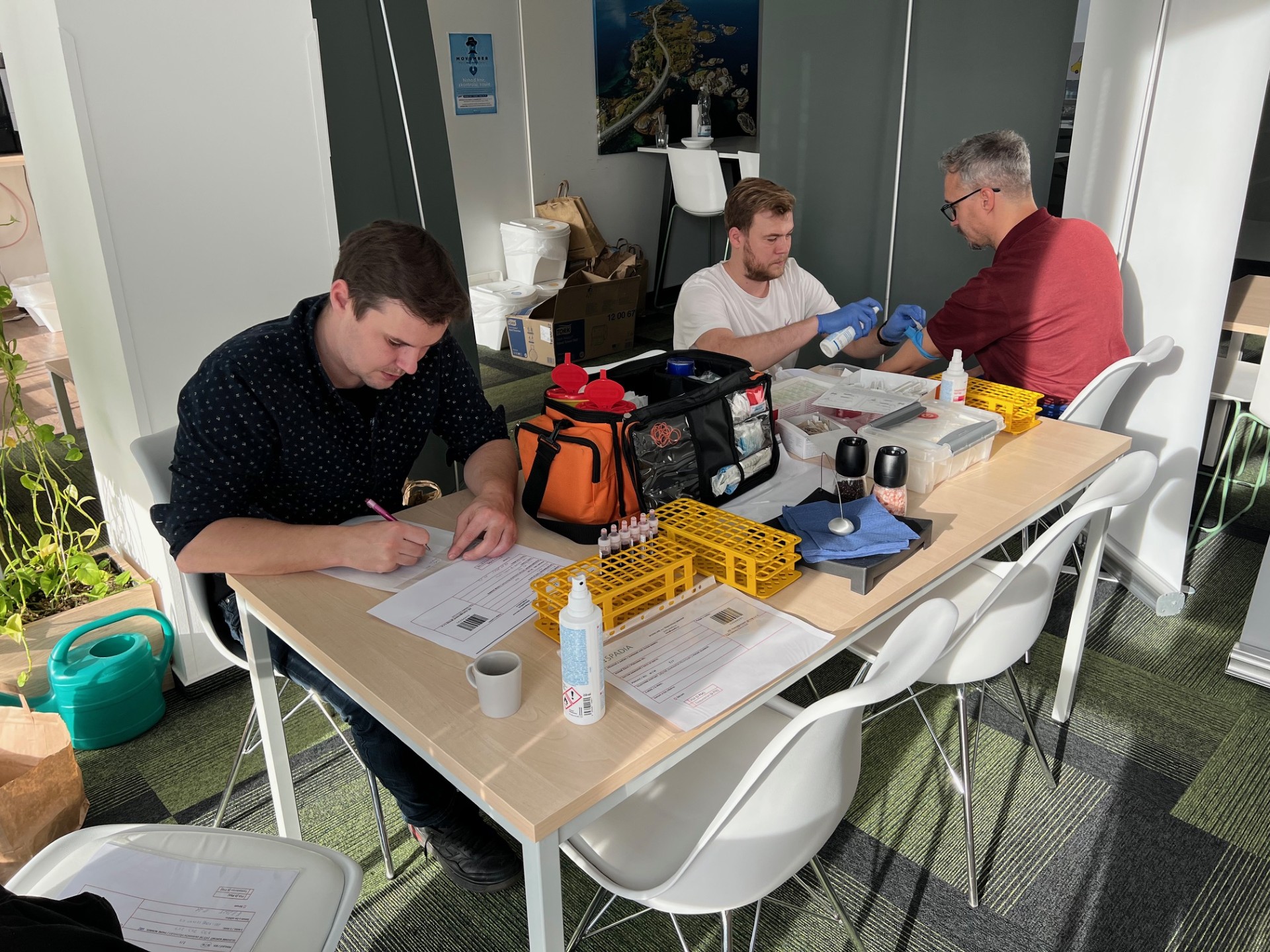 Všichni muži ve firmě obdrželi poukaz na odběr PSA testu, který probíhal přímo v prostorách firmy. Součástí testu byla také kontrola hladiny testosteronu, což mnoho kolegů zaujalo. Spousta kolegů využila příležitost a nechala se otestovat. Odběr krve probíhal hladce a bez komplikací, což umožnilo rychlé odbavení občasných krátkých front. Testování se konalo v kuchyňce, kde si mohli účastníci při čekání vychutnat kávu a chvíli si popovídat. Pocelou dobu testování bylo tak akorát plno, což nám ukazuje, jak důležitá je prevence a jak moc je v naší firmě tento problém aktuální.