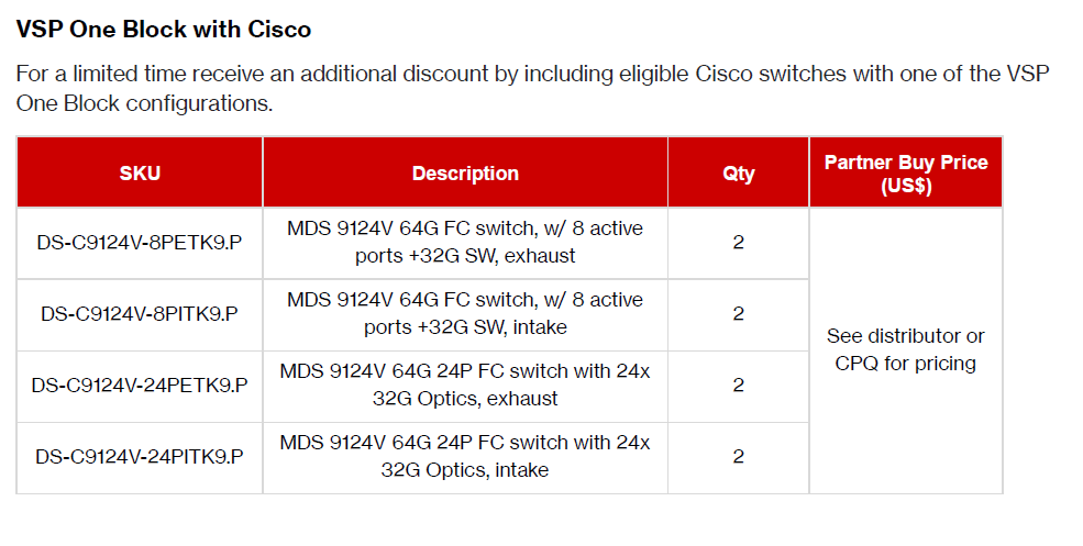 Do promo akce nově zahrnujeme switch 2x Cisco MDS 9124V 64-Gbps (8 nebo 24 portů 32Gbps SFP). Tento prvek přináší na trh nejnovější technologii Fibre Channel s extrémně vysokým výkonem a nízkou latencí.